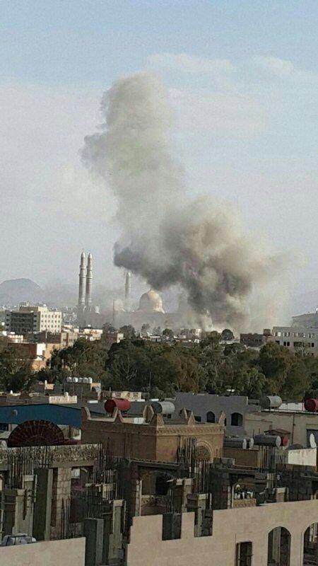 شن طيران العدوان السعودي الأمريكي عصر اليوم غارة استهدفت معسكر الأمن المركزي بالعاصمة صنعاء .