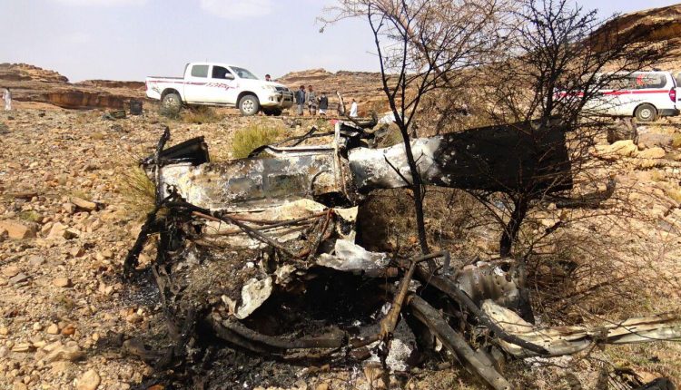 شاهد فيديو+صور | طيران العدوان يستهدف سيارة أحد المواطنين على الطريق العام في مديرية #مجز #صعدة ويمزق أجساد من كان على متنها 13-05-2019