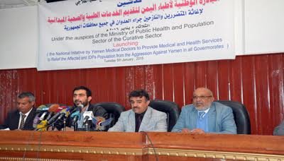 الصحة تدشن المبادرة الوطنية لأطباء اليمن لتقديم الخدمات الطبية للمتضررين والنازحين جراء العدوان السعودي