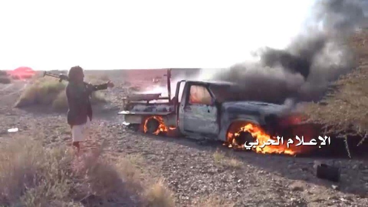 وفي محافظة الجوف دمر وحدة الهندسة لدى الجيش واللجان الشعبية طقما عسكريا للمرتزقة بعبوة ناسفة في جبهة المهاشمة بمديرية خب والشعف ما أسفر عن مصرع عدد منهم.