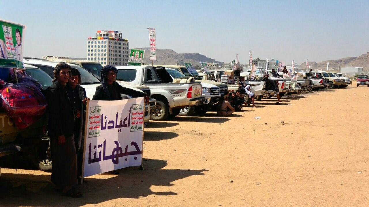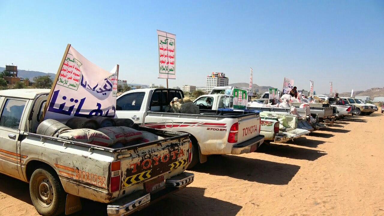 سير أبناء محور همدان بن زيد بمحافظة صعدة اليوم قافلة غذائية كبرى للمرابطين في جبهات الدفاع عن الوطن تحت شعار ” أعيادنا جبهاتنا”.