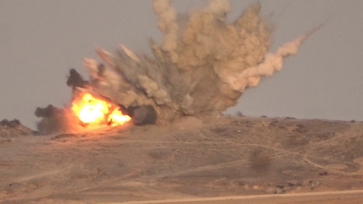 كما فجرت وحدة الهندسة عبوة ناسفة بمجموعة من المنافقين في جبهة الظهرة بمديرية خب والشعف ما أسفر عن مصرع وجرح المجموعة.