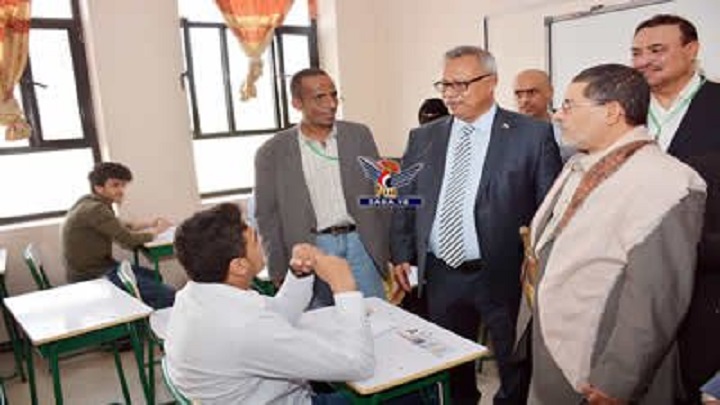دشن رئيس الوزراء الدكتور عبدالعزيز بن حبتور ومعه وزير التربية والتعليم يحيى بدر الدين الحوثي وأمين العاصمة حمود عباد اليوم الأحد امتحانات الثانوية العامة بقسميها العلمي والأدبي.