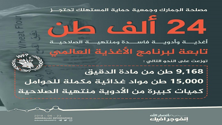 جمارك صنعاء يكشف عن احتجاز 24 الف طن مساعدات غذائية فاسدة