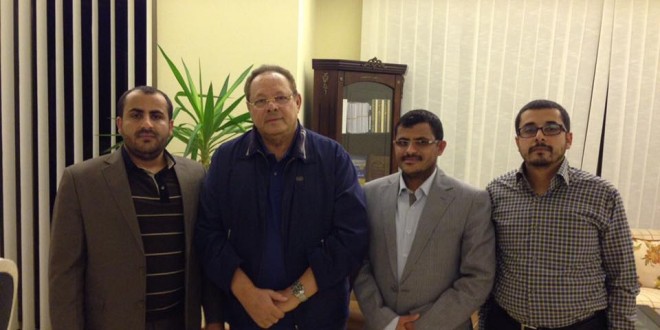 الصورة في بيروت مع الرئيس علي ناصر محمد وبصحبة الأخوين سفر الصوفي مدير مكتب السيد عبدالملك الحوثي وإبراهيم الديلمي مدير قناة المسيرة الفضائية