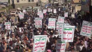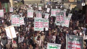 كما هتفوا بشعارات منها “أصرخ يا شعب الإيمان.. زلزل أعاد الشيطان، “صرخة من يمن الإيمان.. هزت أذناب الطغيان”، “والصرخة في وجه الأعداء.. عمدها دم الشهداء”، “الصرخة تبقى عنوان.. يرفعها شعب الإيمان”، “أصرخ في وجه الطاغون.. الموت لإسرائيل الموت”.