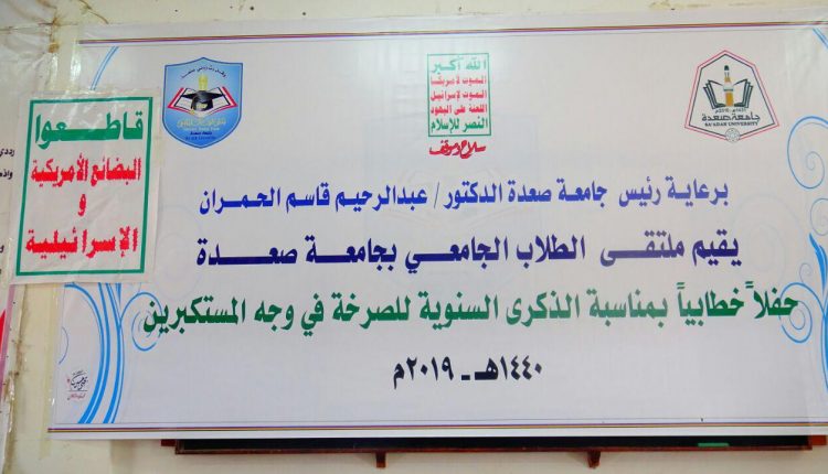 صعدة : ملتقى الطلاب الجامعي بجامعة صعدة يقيم حفل خطابي بمناسبة ذكرى الصرخة السنويه1440هـ