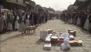 وخلال تسيير القافلة التي احتوت على عدد من المواشي والمواد الغذائية ومبالغ مالية نظمت وقفة قبلية مسلحة تأكيدا على مواصلة الصمود ورفضا لصفقة القرن واستنكارا لجرائم العدوان .