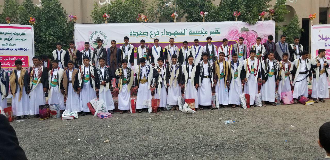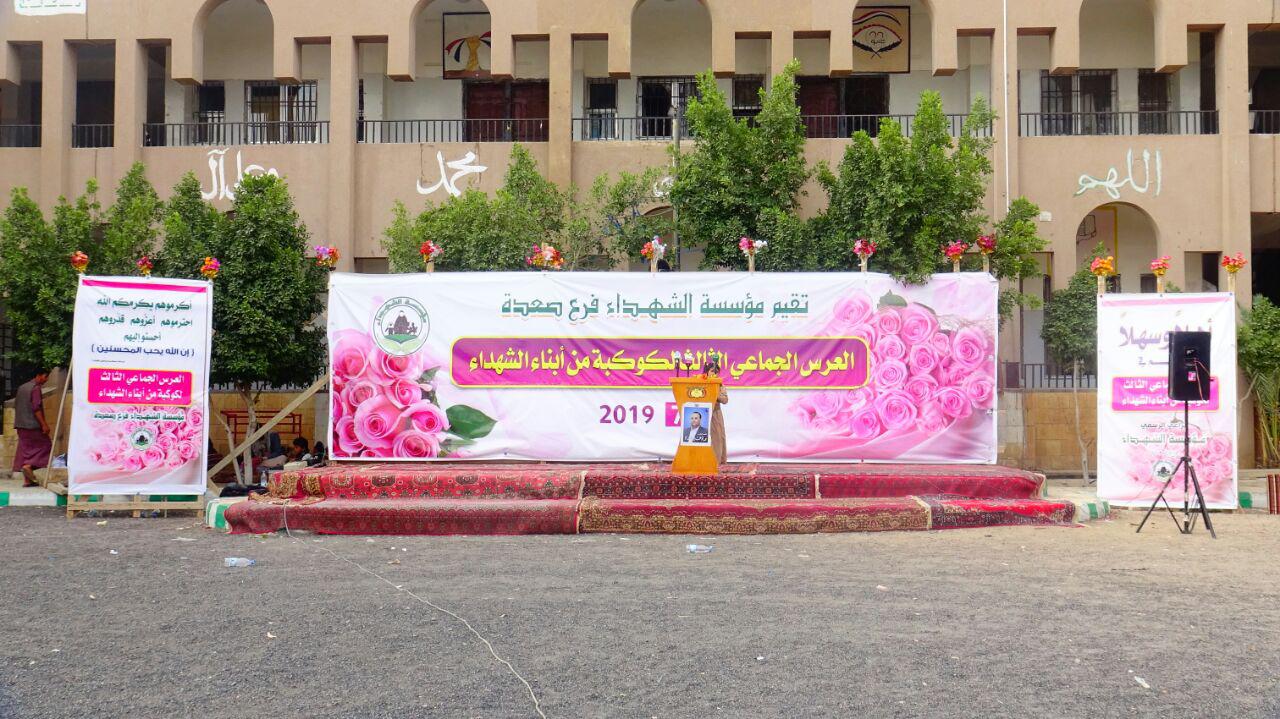 نظمت مؤسسة الشهداء بمحافظة صعدة ، اليوم الاحد ، عرسا جماعيا لـكوكبة من أبناء الشهداء بالمحافظة .