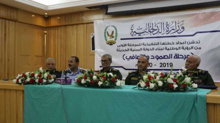دشنت وزارة الداخلية اليوم العمل بالمرحلة الأولى من الرؤية الوطنية لبناء الدولة اليمنية الحديثة 2019- 2020 .