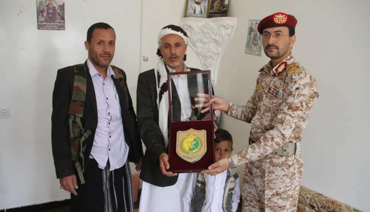 كرم مدير دائرة التوجيه المعنوي المتحدث الرسمي للقوات المسلحة العميد يحيى سريع اليوم بصنعاء أسرة الشهيد المجاهد محمد عبدالمنعم أحمد الشامي بدرع وزارة الدفاع.
