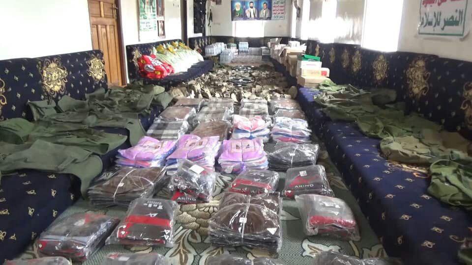 سيرت أسرة الشهيد مؤيد صالح المحاقري من أبناء مديرية سنحان بصنعاء، اليوم الأحد، قافلة غذائية وعينية ومالية للجيش واللجان الشعبية المرابطين في جبهات العزة والكرامة.