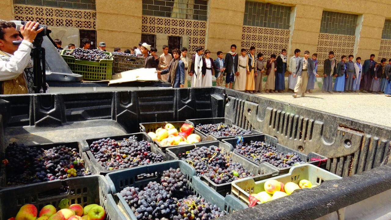 وأثناء تقديم القافلة التي شملت الكثير من سلال العنب والتفاح للمراكز الصيفية بالمحافظة