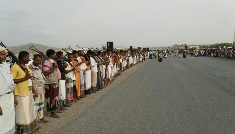 نفذت تهامة في مديرية عبس وما جاورها بمحافظة حجة، اليوم الأربعاء، وقفة قبلية مسلحة اعلنت من خلالها رفضها القاطع لما قامت به ميليشيات الإمارات بجنوب الوطن من عملية تهجير قصري وعنصري لأبناء المناطق الشمالية من مدينة عدن وبعض المحافظات المجاورة .