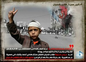 تصاميم 👆🏻👆🏻 مجزرة طلاب ضحيان ، عام على عروج شهداء معظمهم من الأطفال، في محافظة صعدة جراء استهداف الطيران السعودي حافلة تقل طلابا أثناء مرورها وسط سوق شعبي، في مجزرة اعتبرها التحالف السعودي متوافقة مع القانون الإنساني الدولي !!