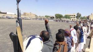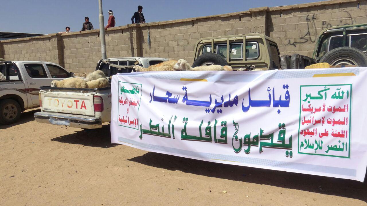 سير أبناء ومشائخ واعيان مديرية سحار بمحافظة صعدة اليوم قافلة غذائية ومالية دعما واسنادا للمرابطين في الجبهات من الجيش واللجان الشعبية بأسم قافلة النصر ، معززين ذالك العطاء بوقفة قبلية مسلحة تأكيداً على مواصلة الصمود وتنديدا بمجازر العدوان بحق ابناء الشعب اليمني .