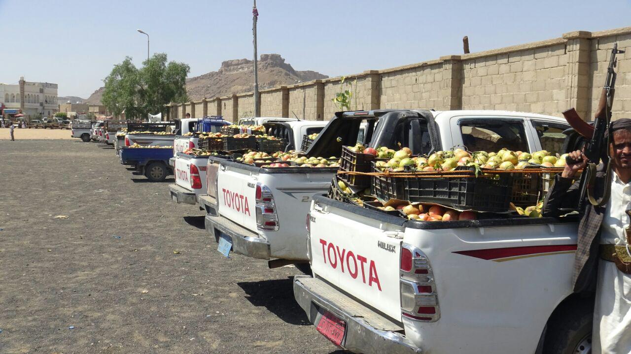 احتوت القافلة على عدد 140 رأس من المواشي و 845 من سلال الرمان والعنب بالاضافة الى مبالغ مالية كبيرة ومواد غذائية متنوعة .