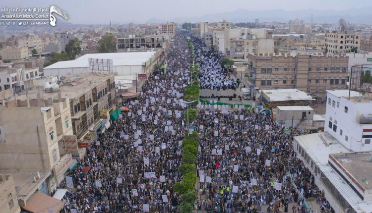وأضاف “خروجكم الكبير دليل على ضمائركم الحية ورفضكم للباطل الذي قمتم ضده بإسقاط مشروع قوى العدوان وعلى رأسها أمريكا وإسرائيل واستهدافه لهوية وعقيدة الأمة “.