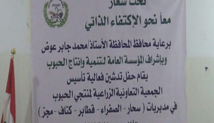 دشنت المؤسسة العامة للتنمية وأنتاج الحبوب فعاليات تأسيس الجمعية التعاونية الزراعية لمنتجي الحبوب تحت شعار معا نحو الاكتفا۽ الذاتي على مستوى الجمهورية من محافظة صعدة بد۽ا بمديريات سحار الصفرا۽ قطابر كتاف مجز.