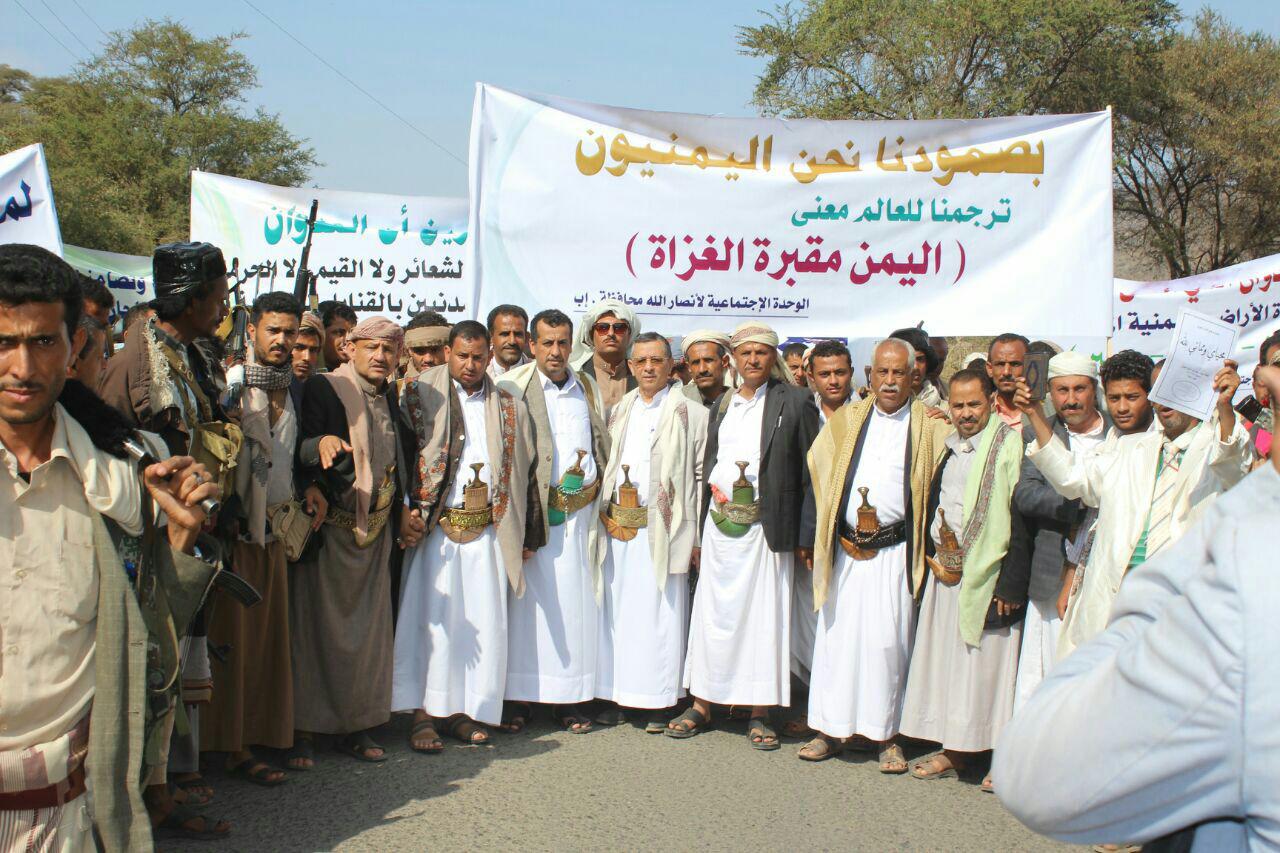1استنكارهم لصمت الدولي تجاه ما يرتكبه النظام السعودي من جرايم اباده بحق اليمنيين .