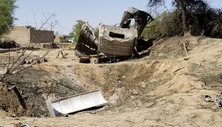 وأوضح مصدر محلي بصعدة أن طيران العدوان الغاشم شن ثلاث غارات استهدفت سيارة مواطن (نوع دينه ) في منطقة ال عقاب ما أدى إلى تدميرها بالكامل وتضرر منازل ومزارع المواطنين المجاورة