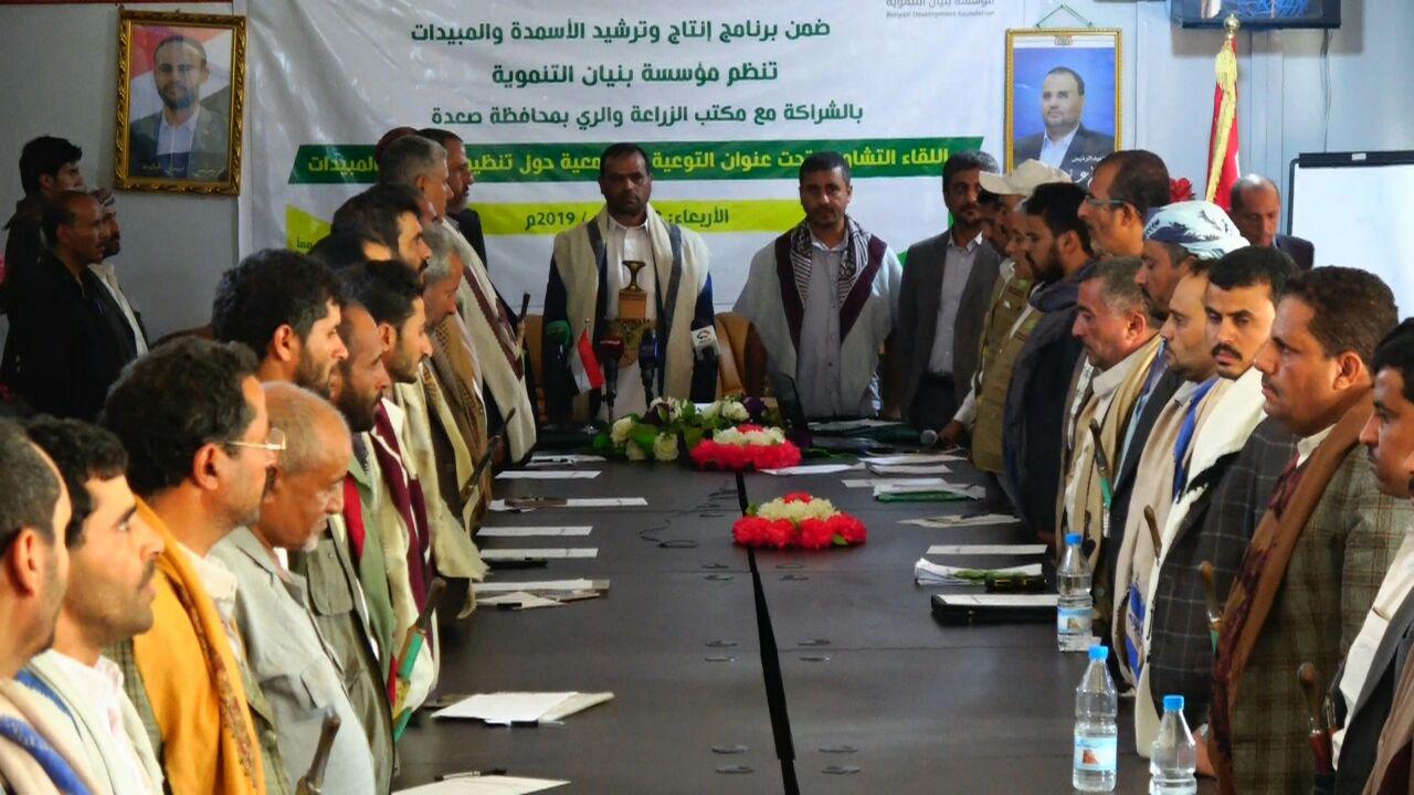 نظمت مؤسسة بنيان التنموية بالشراكة مع مكتب الزراعة والري بصعدة اليوم لقاء تشاوري بمحافظة صعده للتوعية المجتمعية حول تنظيم استخدام المبيدات الزراعية.