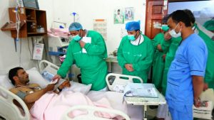 وفي الزيارة عبر وزير الصحة عن بالغ التقدير والمنة لما تفضل به الجرحى من تضحية وكرم لهذا الشعب العظيم وهم يسطرون بأجسادهم انصع ملاحم المجد ضد الغزاة والمعتدين .. داعيا القطاع الصحي إلى بذل قصارى الجهود للإهتمام بالجرحى الذين مهما قدمنا لهم يظل قليلا بحجم ما قدموه خدمة لليمن وشعبه .