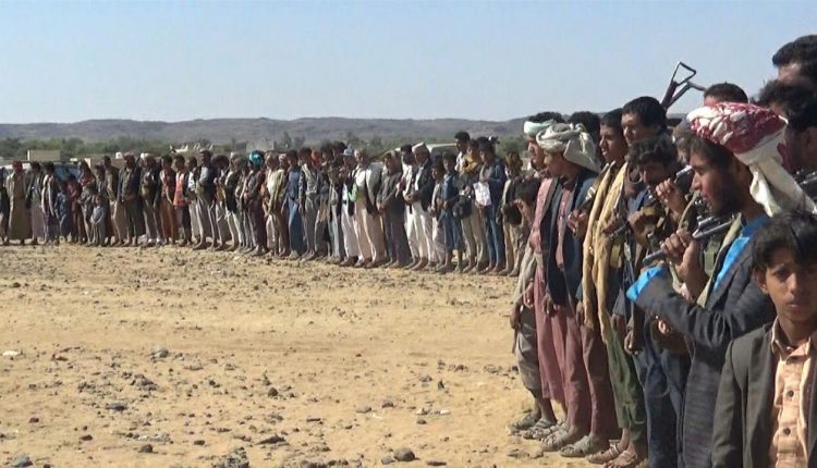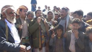 وقفة قبلية مسلحة لأبناء وقبائل ال سالم بصعدة لإعلان النفير العام وتنديدا بجريمة العدوان في مديرية كتاف