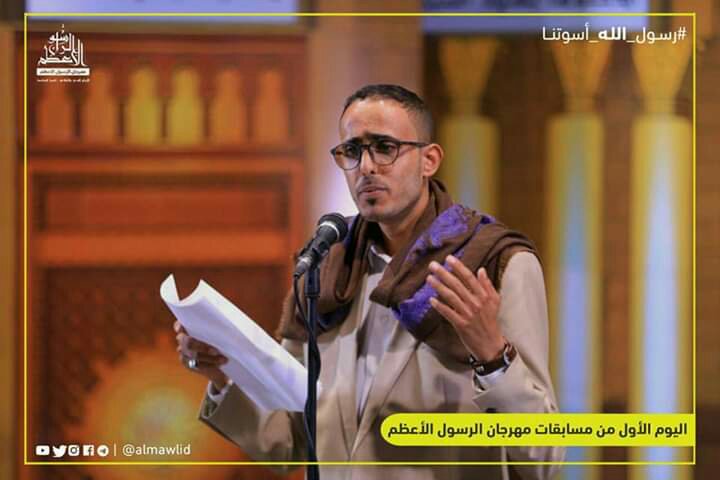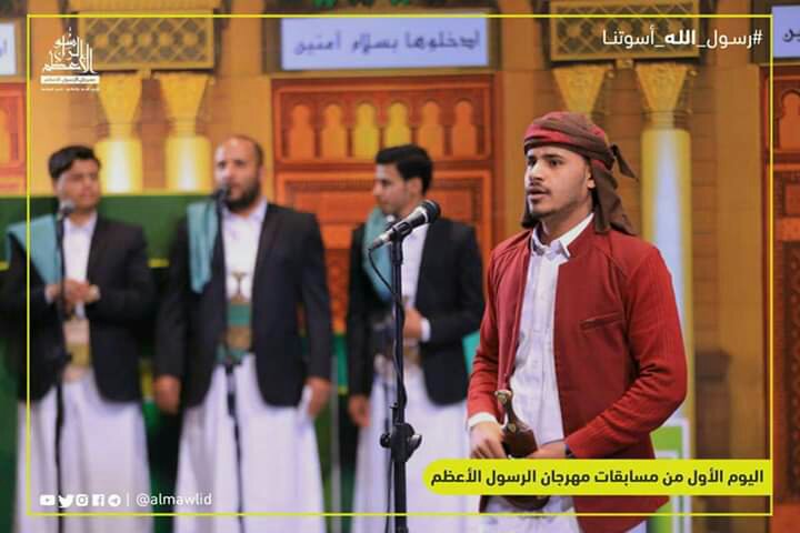 كما شهدت الفعالية حضور الانشاد بمشاركة المتسابق زكريا اسماعيل من صنعاء الذي عبر عن حبه وولاءه للرسول الأعظم في ذكرى مولده الشريف وحضر الشعر بمشاركة المتسابق سامي الحوثي بقصيدة شعرية رسم بها لوحة شعرية فريدة في مقام رسول الله الكريم.