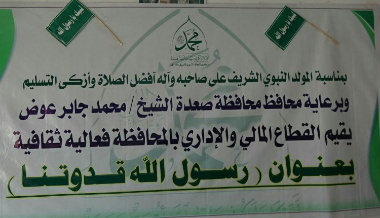 أقام القطاع المالي والإداري بمحافظة صعدة فعالية احتفالية بمناسبة ذكرى المولد النبوي الشريف على صاحبة وآله افضل الصلاة واتم التسليم