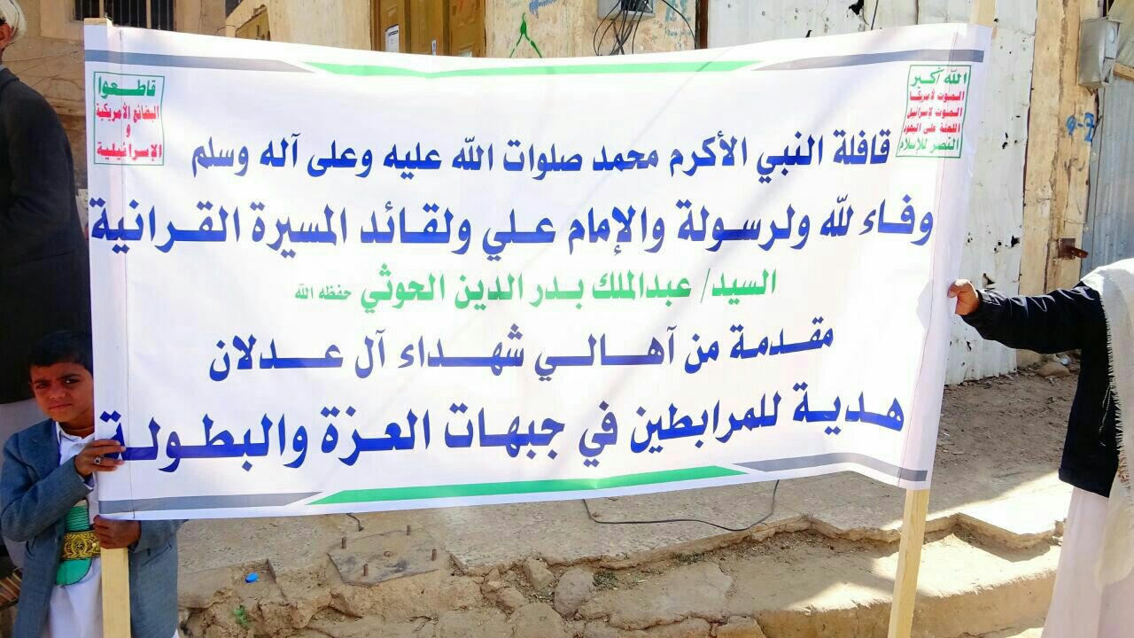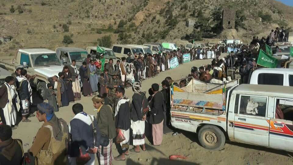 يتتابع تسيير القوافل الغذائية والمالية من كافة مديريات محافظة صعدة دعما واسنادا لأبطال الجيش واللجان الشعبية المرابطين في جبهات القتال ، وتنظيم الوقفات القبلية المؤكدة على مواصلة الصمود بالتزامن مع ذكرى المولد النبوي الشريف .حيث قدم اليوم أبناء مديرية الصفراء قافلة غذائية تحمل أسم “الرسول الأعظم ” دعما واسنادا للجيش واللجان الشعبية في جبهات القتال بمناسبة المولد النبوي ، معززين ذالك العطاء بوقفة قبلية مسلحة ، تأكيدا على مواصلة الصمود .واحتوت القافلة الذي حضرها محافظ محافظة صعدة محمد جابر عوض والأمين العام للمحافظة محمد العماد ، وعدد من الشخصيات الإجتماعية والثقافية ، والمشائخ والأعيان بالمنطقة ، على مواد غذائية متنوعة وملابس شتوية وبجائم وعدد من رؤوس الأغنام ومبالغ مالية كبيرة .وسير أبناء مديريتي آل سالم وسحار قافلة غذائية ومالية ، دعما للمرابطين في الجبهات ، احتوت على عشرات السيارات المحملة بفاكهة البرتقال واليوسفي وعشرات من رؤوس الأغنام ، ومبالغ مالية كبيرة ومواد غذائية متنوعة .وقدم أبناء مديرية منبه قافلة غذائية بمناسبة المولد النبوي دعما واسنادا للجيش واللجان الشعبية المرابطين في الجبهات ، تحتوي على المواد الغذائية المتنوعة والمبالغ المالية والعسل والسمن البلدي .كما سير أبناء مديريات قطابر وساقين وبني بحر ثلاث قوافل غذائية ومالية رفدا للمقاتلين في الجبهات من الجيش واللجان الشعبية .وفي سياق متصل قدم آهالي وأسر شهداء آل عدلان بمدينة صعدة قافلة غذائية ، دعما واسنادا لأبطال الجيش واللجان الشعبية ، احتوت على مواد غذائية متنوعة وملابس شتوية وبجائم وبطانيات وعدد من رؤوس الأغنام .وأكد المشاركون في الوقفات القبلية استمرارهم في رفد الجبهات بقوافل المال والرجال في ظل استمرار العدوان ، وسوف يتبعها المزيد من القوافلتأتي هذه القوافل بالتزامن مع مناسبة المولد النبوي الشريف الذي يحيها أبناء محافظة صعدة والشعب اليمني عموما للعام الخامس على التوالي في ظل العدوان والحصار تعبيراً عن حبهم وانتمائهم لرسول الله ورفضا للهيمنة الامريكية الاسرائيلية .