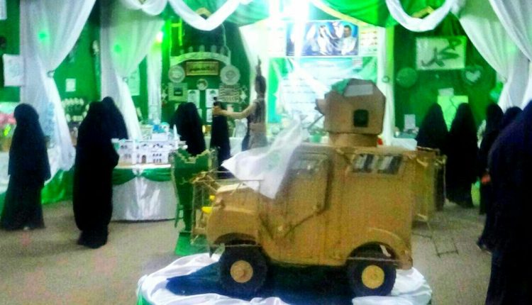 المعرض الذي افتتحه مكتب التربية والهيئة النسائية يوم أمس بالمحافظة حوى عدد من التحف والمجسمات الفنية واللوائح والرسوم التي عبرت عن جوانب من حياة الرسول صلوات الله عليه وعلى آله.عكست مستوى الاخلاص والإبداع الذي تتحلى به الهيئة النسائيه بمحافظة صعدة.