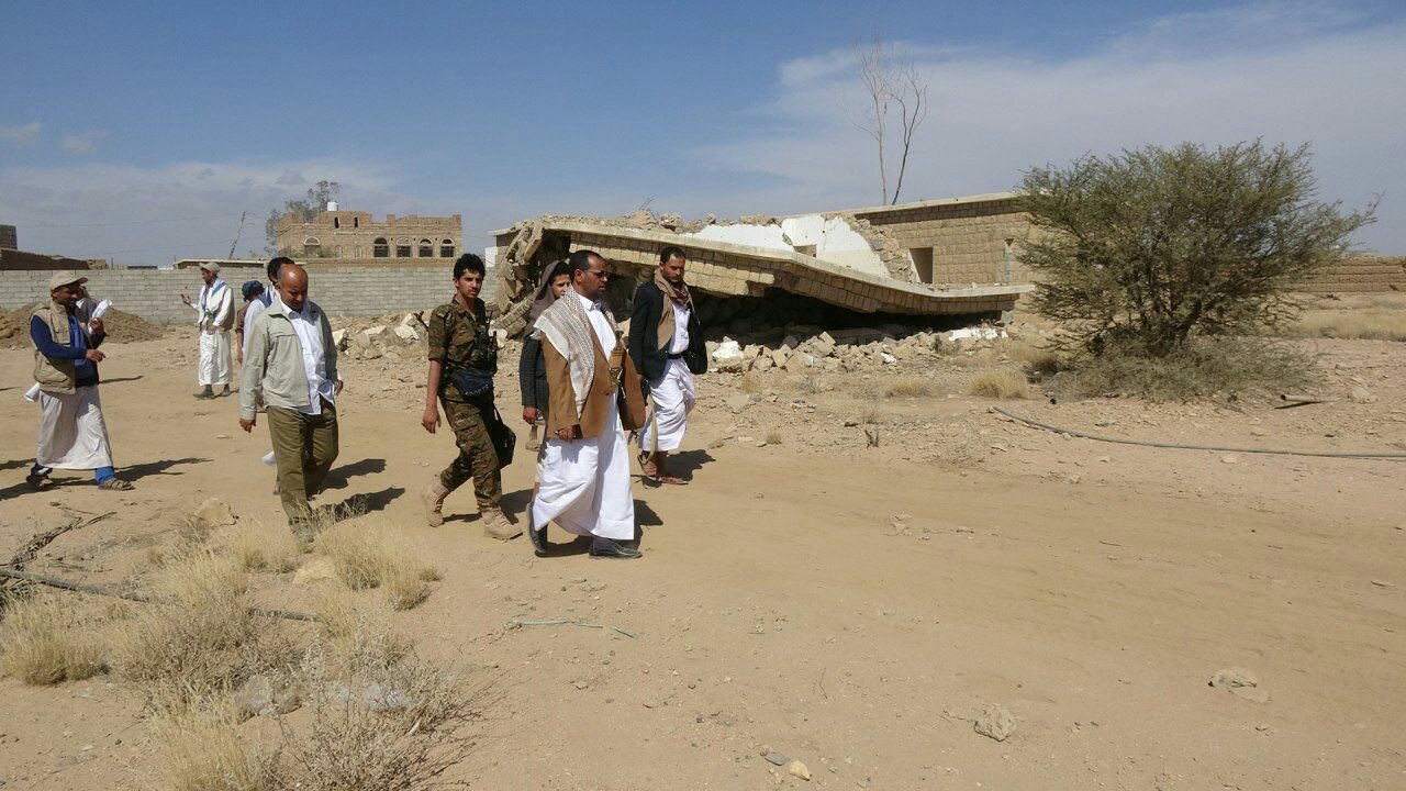 صعدة : محافظ صعدة ومدير مكتب الزراعة يطلعون على حجم الدمار الذي لحق بمكتب الزراعة اثر قصف الطيران
