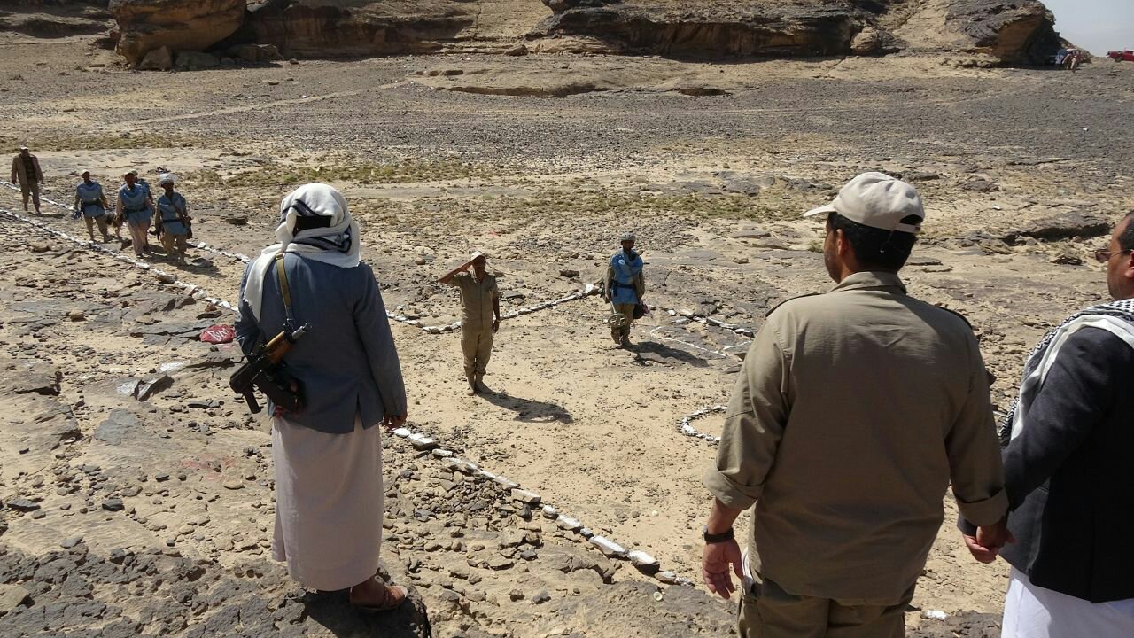 محافظ صعدة يطلع على سير عمل فريق نزع الالغام بمنطقة الحمزات