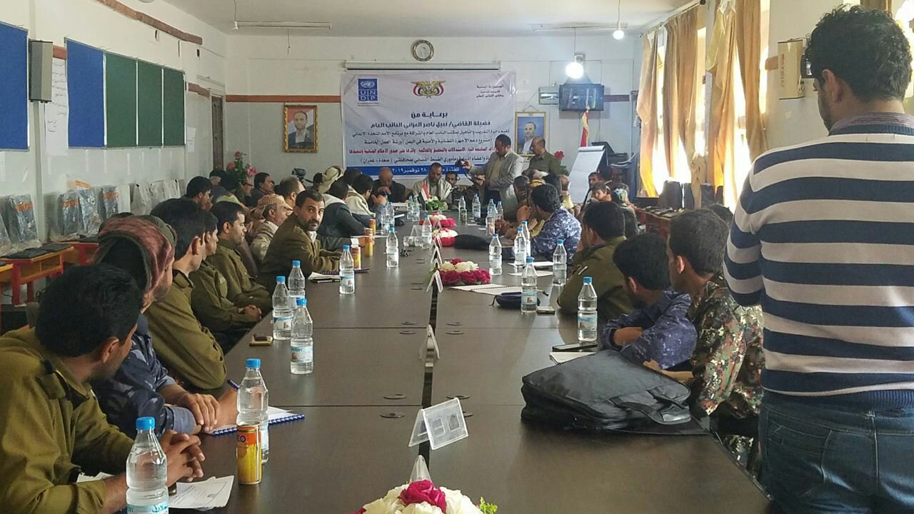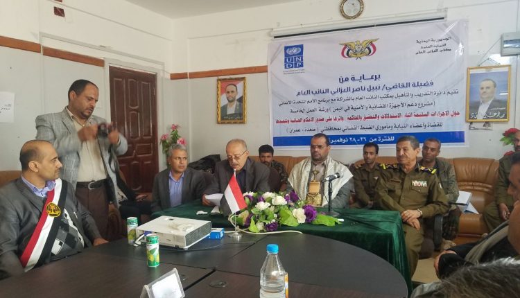 تلقى 29 قاضيا وعضو نيابة ومأمور ضبط قضائي من صعدة وعمران خلال الورشة التي نفذتها في ثلاثة أيام، دائرة التدريب والتأهيل بمكتب النائب العام بالتعاون مع برنامج الامم المتحدة الإنمائي ” مشروع دعم أجهزة القضاء والأمن”، معارف حول الإجراءات السلمية أثناء الاستدلالات والتحقيق والمحاكمة وما يشوبها من أخطاء تؤدي في نتائجها إلى إفلات المتهمين من العقاب .