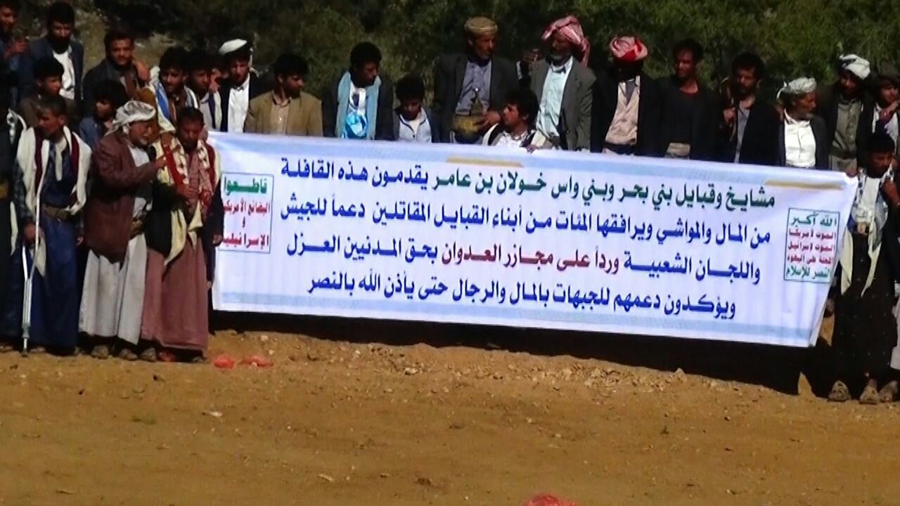 صعدة : قافلة غذائية من أبناء وقبائل خولان بن عامر دعما واسنادا لأبطال الجيش واللجان الشعبية