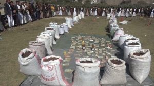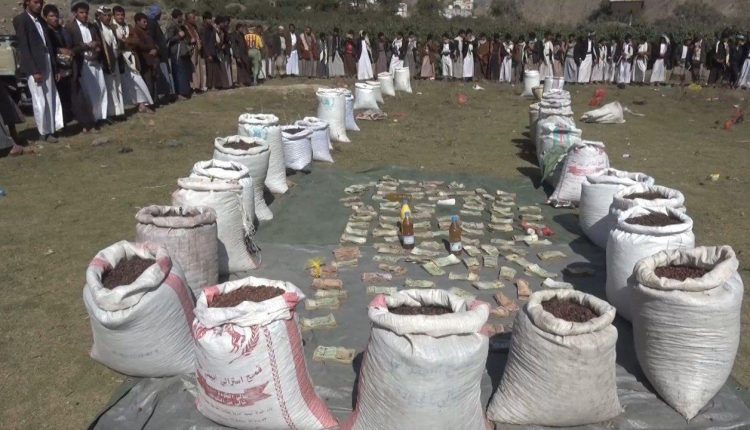 احتوت القافلة مواد غذائية متنوعة وكميات من البن والعسل والبلدي ومبالغ مالية كبيرة وعشرات المواشي .
