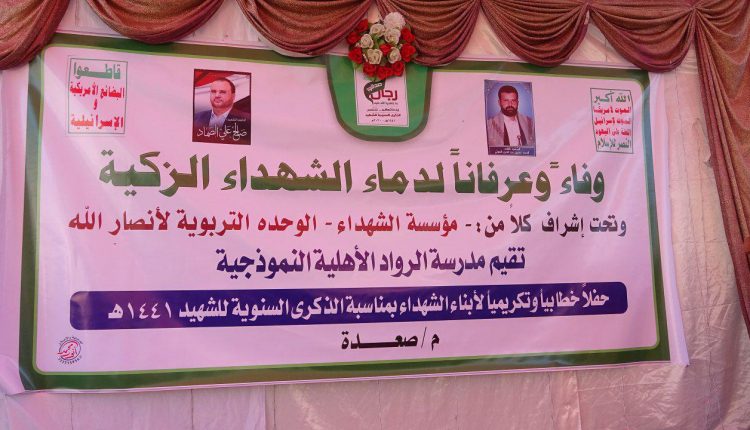 نظمت مدرسة الرواد الأهليه بمحافظة صعدة حفل خطابي وتكريمي لأبناء شهداء المجاهدين من الجيش واللجان الشعبية بالتعاون مع مؤسسة الشهداء والوحدة التربوية لأنصار الله بالمحافظة .