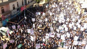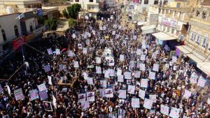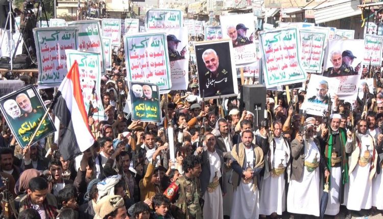 مظاهرة جماهيرية حاشدة في صعدة تنديدا بجريمة اغتيال سليماني والمهندس ورفاقهما