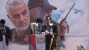 وعبر عن تضامن الشعب اليمني ووقوفه مع القيادة في إيران والعراق والحشد الشعبي وفيلق القدس والمقاومة والشعوب الحرة لاقتلاع جذور الشر أمريكا و”إسرائيل”، متوعدا الطغاة بالثأر.