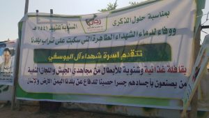 من جانبه أكد أبناء واقارب شهداء ال اليوسفي البالغ عددهم اكثر من مئة شهيد أثناء تسيير القافلة، أهمية استمرار الصمود في مواجهة العدوان ورفد الجبهات بالرجال لمساندة الجيش واللجان الشعبية المقاتلين في سبيل الله والدفاع عن الوطن وأمنه واستقراره .