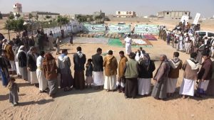 واثناء تقديم القافلة التي حضرها محافظ محافظة صعدة محمد جابر عوض ومدير أمن المحافظة حسن صلاح المراني .. نظم الحاضرون وقفة للتنديد بجرائم العدوان على الشعب اليمني وتأكيداً على الصمود في مواجهة العدوان الغاشم.