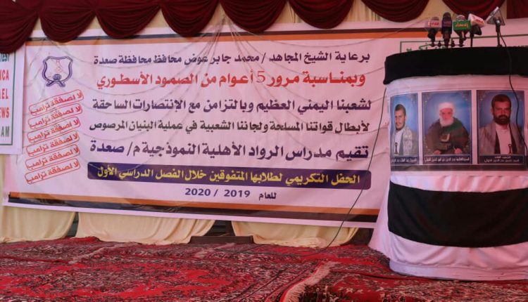 بمناسبة مرور 5 أعوام من الصمود الأسطوري لشعبنا اليمني العظيم وبالتزامن مع الانتصارات الساحقة لأبطال قواتنا المسلحة ولجاننا الشعبية في عملية البنيان المرصوص أقامت مدارس الرواد الأهلية بمديرية صعدة حفلا تكريميا للطلاب المتفوقين وطلاب أبناء الشهداء خلال الفصل الدراسي الأول للعام 2019-2020 م