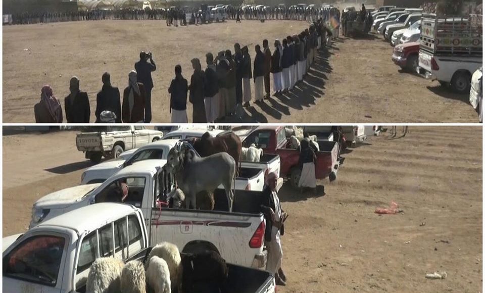 وأثناء تسيير القافلة نظم أبناء المنطقة وقفة قبلية مسلحة أكدوا فيها على رفضهم لصفقة ترمب وتأييدهم لعملية البنيان المرصوص وعمليات الردع الثالثة التي نفذها ابطال الجيش واللجان الشعبية في العمق السعودي ردا على جرائمه التي يرتكبها بحق ابناء الشعب اليمني .