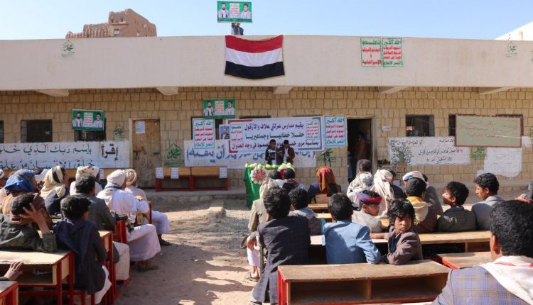خلال كلمته صمود التربويين في الجبهة التربوية على خمسة أعوام رغم المعاناة التي سببها العدوان واستهدافه الممنهج للمؤسسات التعليمية.