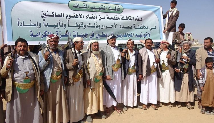 صعدة : قافلة غذائية من أبناء الأهنوم الساكنين بصعدة دعما للجيش واللجان الشعبية