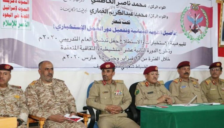 نظمت هيئة الاستخبارات العسكرية والاستطلاع اليوم فعالية بمناسبة تدشين العام التدريبي 2020م واختتام دورة تخصصية لضباط شعبتي الاستخبارات في مأرب والجوف بعنوان تأصيل الهوية الإيمانية وتفعيل دور العمل الإستخباري.
