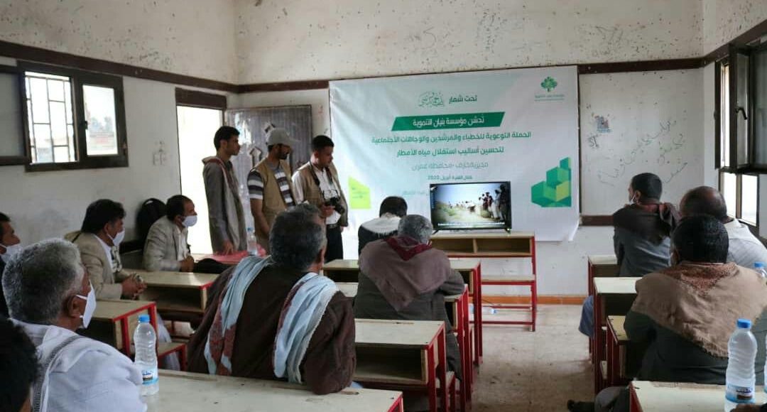 دشنت مؤسسة بنيان التنموية اليوم حملة توعوية حول كيفية استغلال مياه الأمطار بمديرية خارف محافظة عمران.