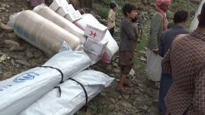 مساعدات إيوائية لأسرة متضررة من السيول بمحافظة صعدة