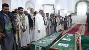 وفي التشييع الذي حضره محافظ المحافظة محمد جابر عوض وعدد من المسؤولين والعلماء وجمع غفير من المواطنين تم أداء الصلاة على جثامينهم الطاهره في جامع الإمام الهادي عليه السلام في مدينة صعدة